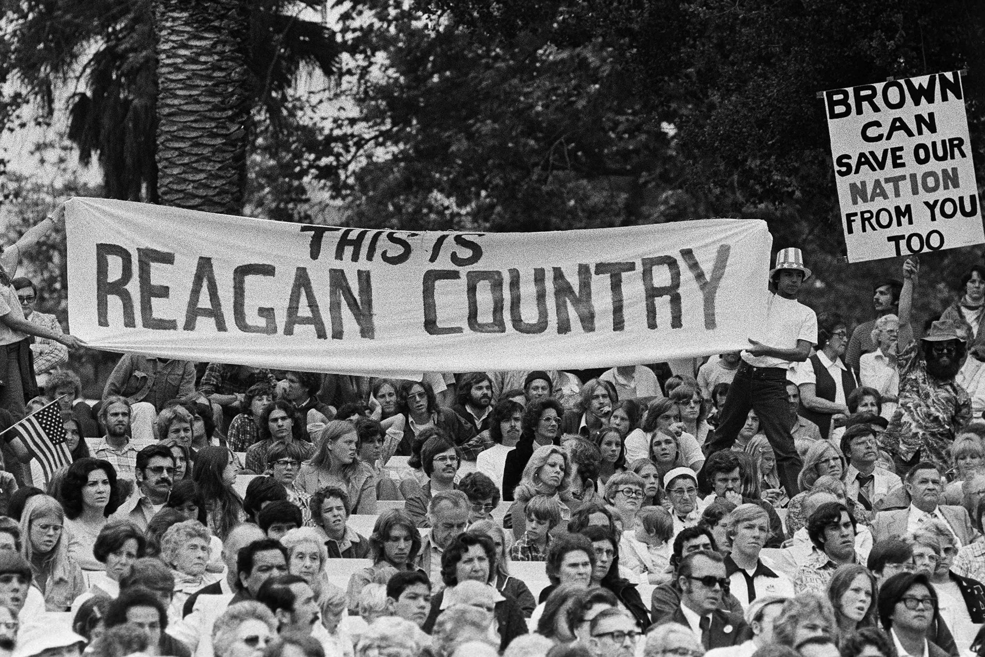 USA. 1980. Bien avant qu’il ne soit récupéré par la vague conservatrice et trumpiste d’aujourd’hui, le slogan Make America Great Again (MAGA) a été inventé par Ronald Reagan lors de sa victoire de novembre 80.